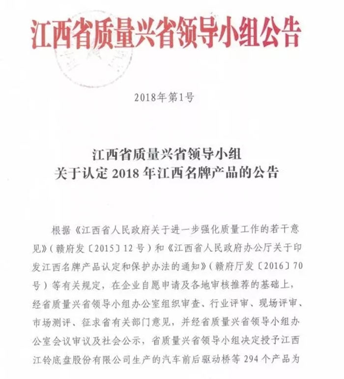 2018年12月21日,由江西省興省領導小組辦公室組織評選的“江西名牌產品”名單隆重揭晚,公司申報的“含氟樹脂FEPPFAPVDFETFE聚醚鮮酮PEEK"等被認定為“江西名牌產品”。